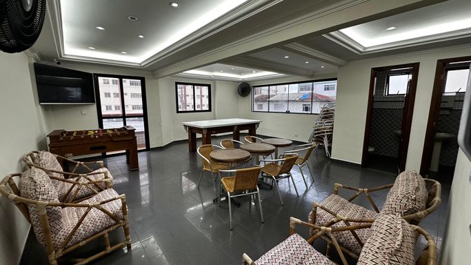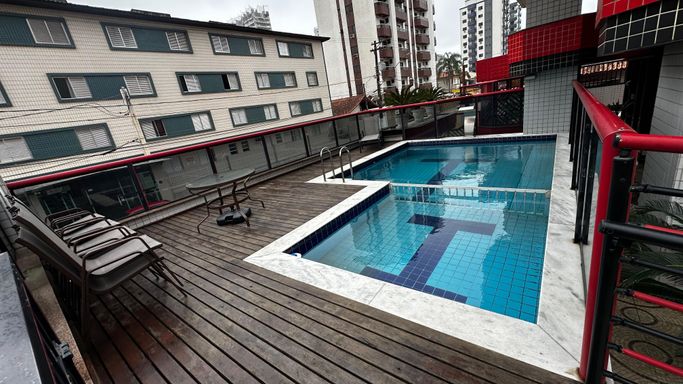 Apartamento no bairro Guilhermina, em Praia Grande, a apenas 60 metros da praia. Com 52,22 m² de área útil, o imóvel conta com 1 dormitório, sala ampla, sacada com vista para o mar, cozinha funcional, área de serviço e banheiro social.
