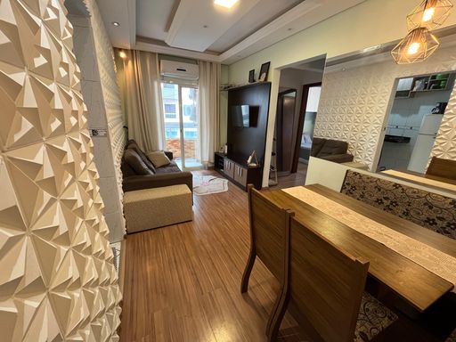O condomínio oferece lazer completo, incluindo piscina, salão de festas e jogos, além de portaria virtual para maior segurança e praticidade. Conta ainda com 2 elevadores e 1 vaga de garagem. Localizado a apenas 300 metros da praia, é ideal tanto para moradia quanto para veraneio. Aceita financiamento bancário.