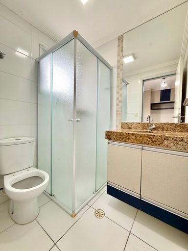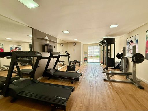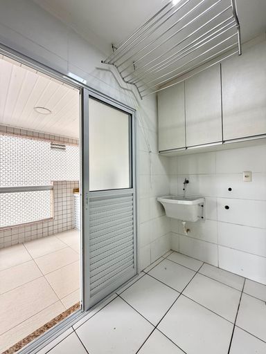 O imóvel dispõe de 2 dormitórios, ambos suítes com armários planejados, sala para 2 ambientes integrada a uma ampla sacada gourmet com churrasqueira a carvão e vista para o mar, cozinha americana, lavabo, além de 2 vagas de garagem e armários individuais.