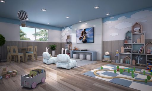 O lazer é completo, distribuído entre mezanino e cobertura. No mezanino, estão disponíveis salão de festas, salão de jogos adulto e juvenil, espaço beleza, academia, brinquedoteca e playground. Já na cobertura, os moradores poderão desfrutar de piscina adulto e infantil, solarium e 4 espaços gourmet.