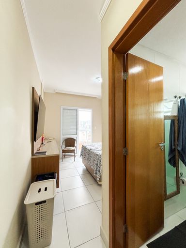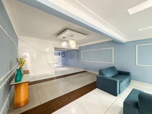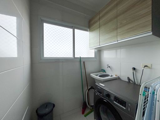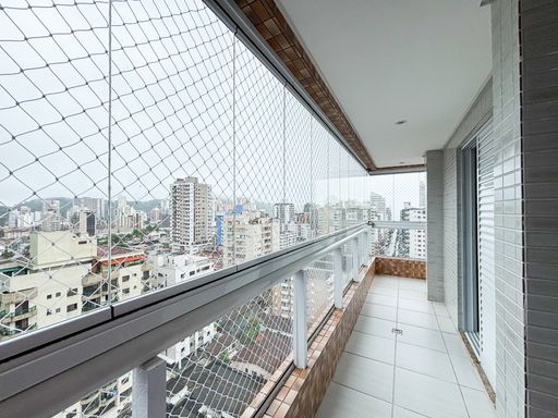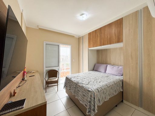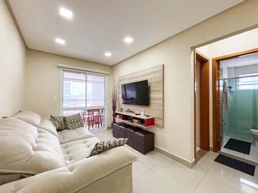 Apartamento semimobiliado de 2 dormitórios, sendo 1 suíte, localizado no bairro Canto do Forte. O imóvel conta com sala ampla em dois ambientes, cozinha americana planejada, sacada gourmet envidraçada, área de serviço e banheiro social.