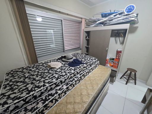 A cozinha é espaçosa e conta com armários, trazendo mais organização e funcionalidade. O banheiro possui box instalado, e o imóvel é semi mobiliado, permanecendo apenas os móveis, exceto os eletrodomésticos.