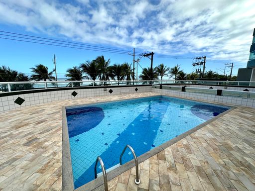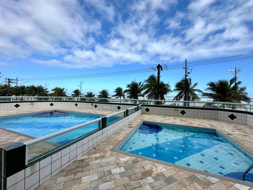 Apartamento frente mar em Praia Grande, com 69,04 m² de área útil, 2 dormitórios sendo 1 suíte, entregue porteira fechada. A unidade possui sala para dois ambientes integrada a sacada gourmet envidraçada com vista total para o mar, cozinha planejada, banheiro social e área de serviço.