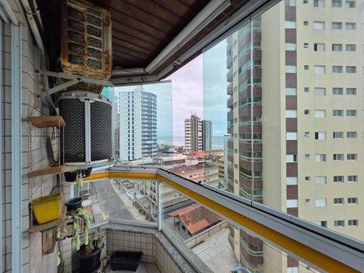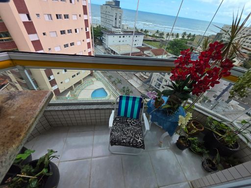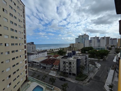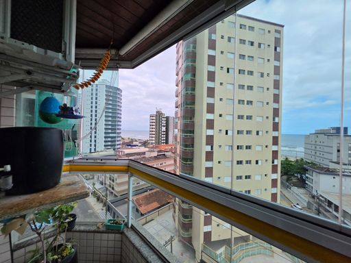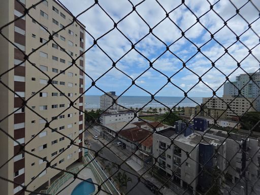 Apartamento localizado no bairro Caiçara, em Praia Grande, no 7º andar de prédio com lazer e portaria 24 horas, ideal para quem busca conforto, segurança e uma excelente vista para o mar.
