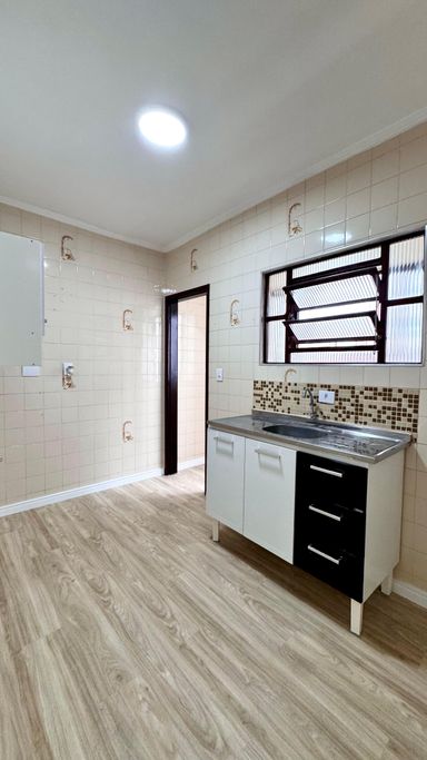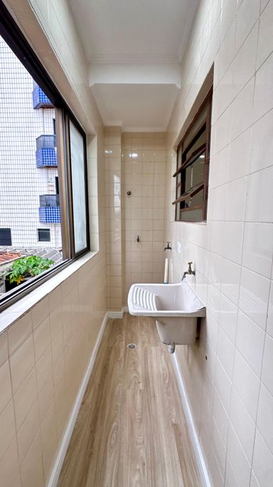 Apartamento com 65 m² de área útil e 87 m² de área total, localizado no centro da Vila Tupi, a apenas 400 metros da praia.