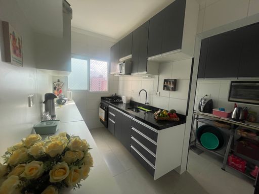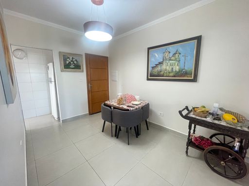Apartamento no bairro Tupi, em Praia Grande, com excelente localização a apenas 180 metros da praia. O imóvel possui 70 m² de área útil muito bem distribuídos, oferecendo 2 dormitórios, sendo 1 suíte, sala aconchegante com acesso à sacada gourmet e vista para o mar, cozinha com móveis planejados e área de serviço.