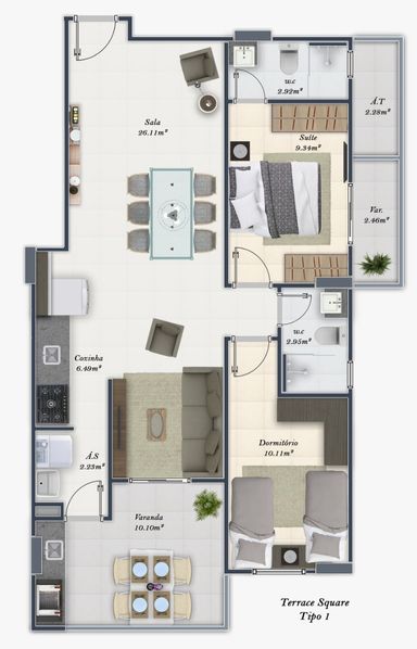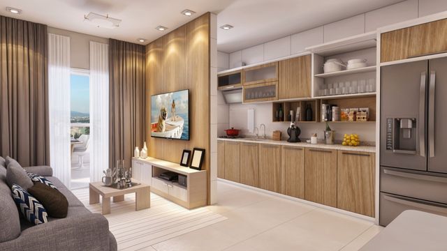 Com 2 dormitórios, sendo uma suíte, e uma sacada gourmet com vista para o mar, você terá o espaço ideal para relaxar e receber amigos e familiares. A sala é projetada para dois ambientes, ideal para momentos de convivência e lazer. A cozinha americana é moderna e funcional, conectada diretamente à área de serviço. Além disso, há um banheiro social para maior comodidade.