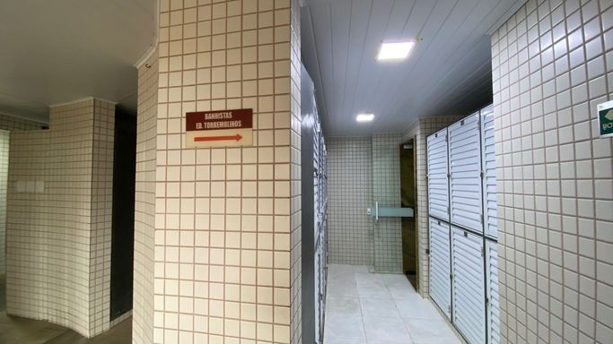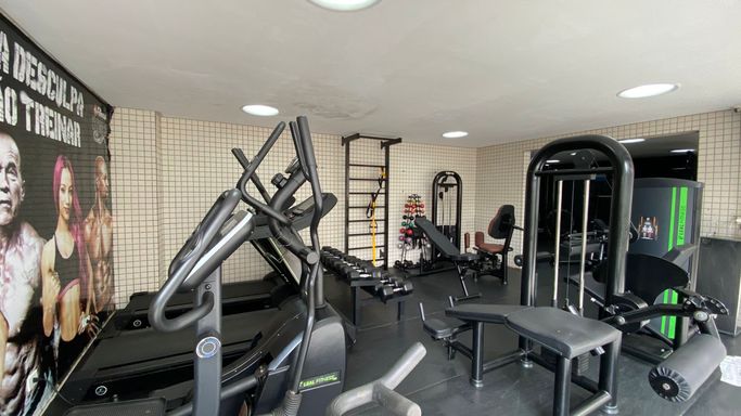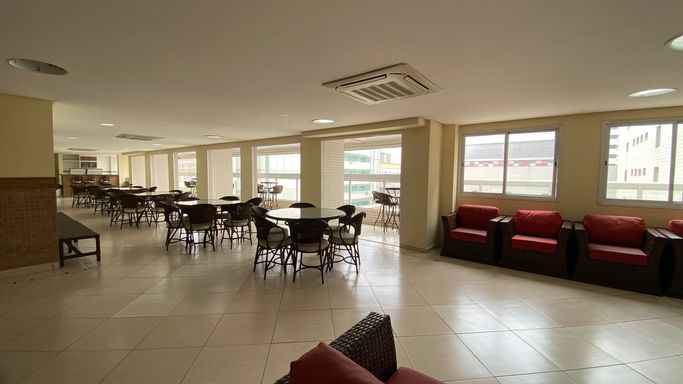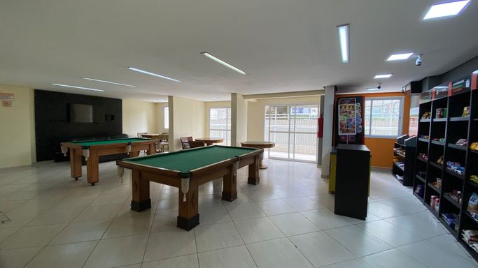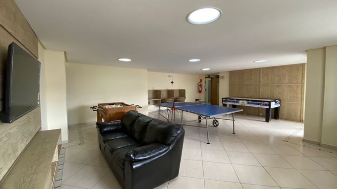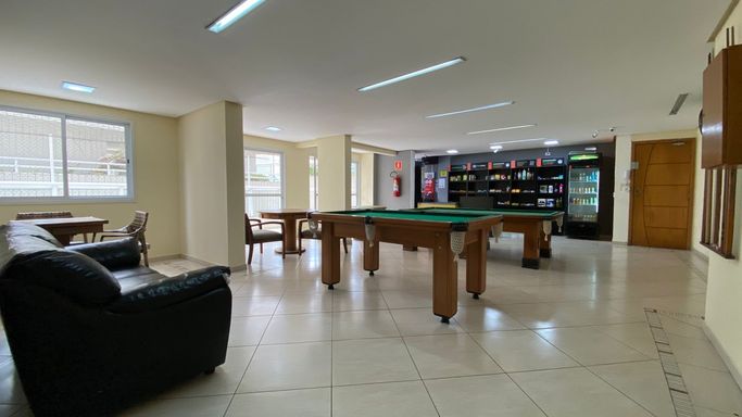 O prédio oferece lazer com piscina e portaria 24 horas, garantindo conforto e segurança.