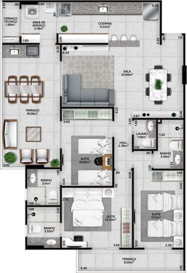 Excelente oportunidade para você que busca conforto, sofisticação e facilidades de pagamento. Este imóvel conta com 105,96 m² de área útil, distribuídos em 3 suítes, lavabo, ampla sala com acesso ao terraço gourmet, e 3 vagas de garagem coletivas. O prédio oferece lazer completíssimo, ideal para toda a família aproveitar com segurança e comodidade.