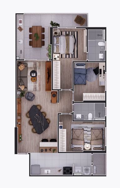 O imóvel conta com 3 dormitórios, sendo 1 suíte, sala ampla para dois ambientes, cozinha espaçosa, sacada gourmet integrada à área técnica, além de área de serviço e banheiro social. A vista para o mar valoriza ainda mais o apartamento, proporcionando um ambiente agradável e diferenciado.