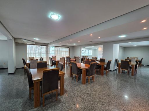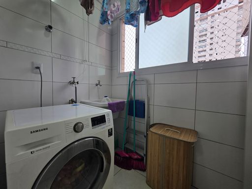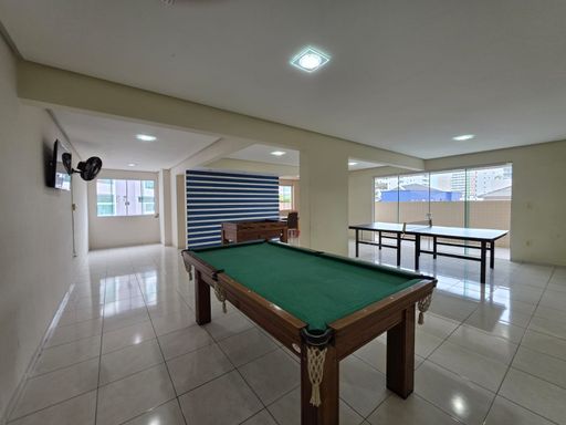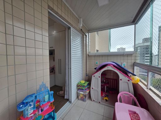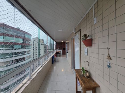 A sala é espaçosa e integrada à sacada envidraçada com tela de proteção e vista lateral para o mar, criando um ambiente agradável para relaxar e receber amigos e familiares. O imóvel é semi mobiliado, permitindo que o novo proprietário aproveite toda a estrutura desde o primeiro dia.