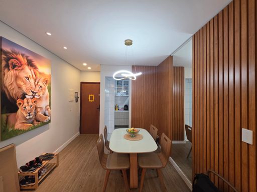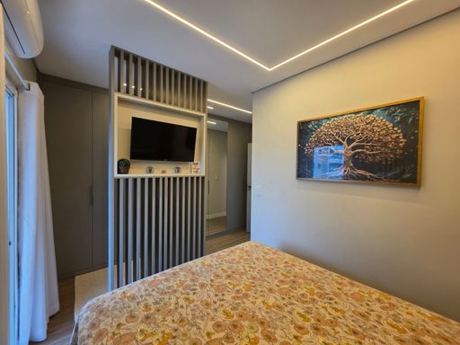 O apartamento conta com 3 dormitórios, sendo 2 suítes. Todos os dormitórios possuem ar-condicionado, garantindo mais conforto no dia a dia. Os ambientes possuem móveis planejados novos, piso vinílico e acabamento de qualidade, proporcionando sofisticação e praticidade.