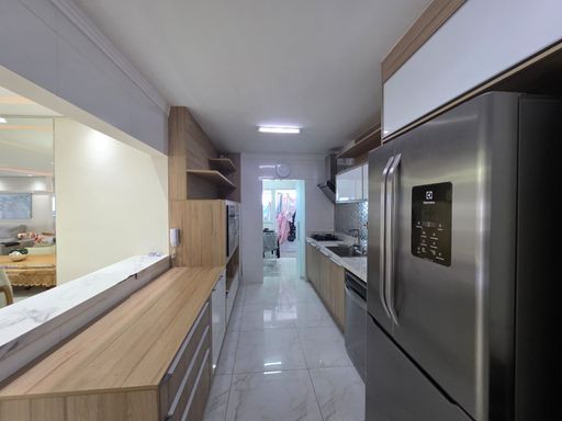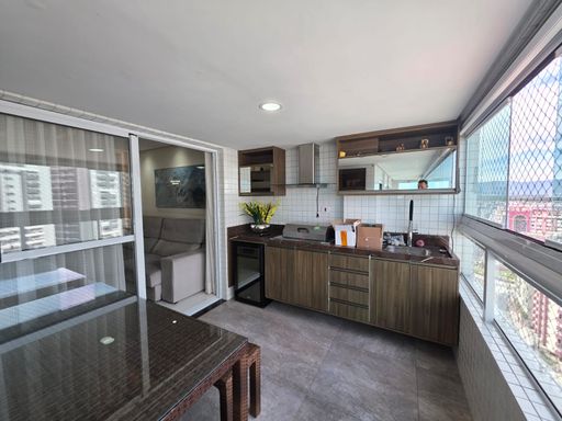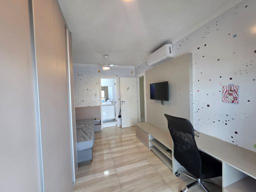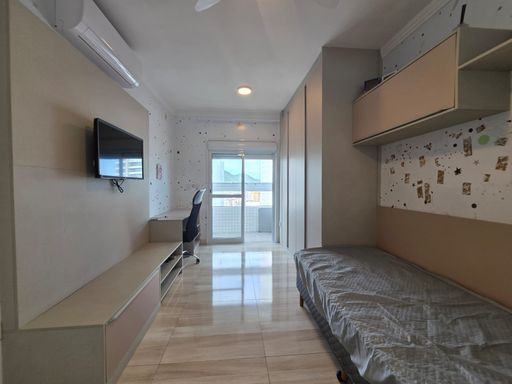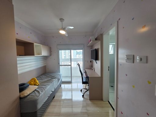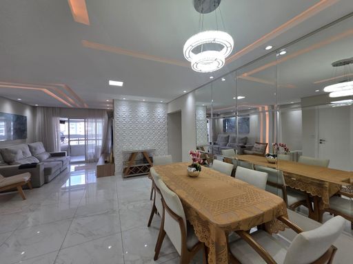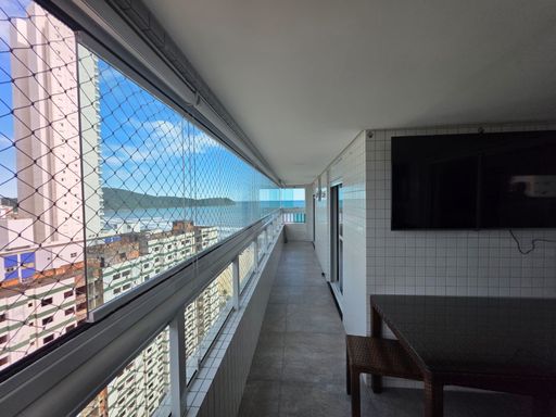 Este apartamento na Guilhermina, situado a apenas 80 metros do mar, oferece conforto, vista permanente e uma estrutura completa em um prédio de alto padrão com lazer completo e portaria 24 horas. O imóvel possui 142 m² de área útil e conta com três suítes com vista mar, dois quartos com acesso à sacada, sala ampla para dois ambientes, sacada gourmet envidraçada com vista definitiva para o mar, cozinha mobiliada, área de serviço, área técnica também com vista mar, dependência de empregada com banheiro, além de lavabo. São duas vagas demarcadas no subsolo, e o imóvel será vendido porteira fechada. O proprietário estuda proposta à vista ou imóvel de menor valor.