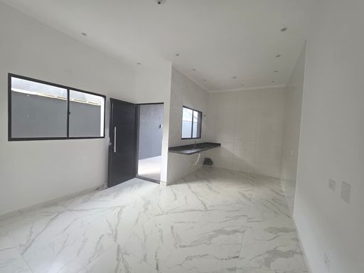 A casa dispõe de aproximadamente 74m² de área útil e 127m² de área total, composta por 2 dormitórios, sendo 1 suíte, banheiro social, sala e cozinha funcional. Além disso, contam com 2 vagas de garagem, sendo 1 coberta.