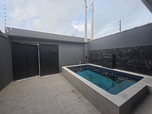 Casa geminada em Itanhaém, localizada a apenas 40 metros da Rodovia, oferecendo praticidade e fácil acesso. Conta com piscina e um espaço gourmet completo com churrasqueira, pia e lavabo, ideal para reunir familiares e amigos.