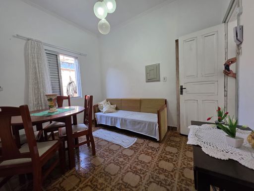 Apartamento kitnet localizado no bairro Canto do Forte, em Praia Grande, com 32m² e ambientes integrados, oferecendo praticidade e conforto em um só espaço. O imóvel é semi mobiliado, integrando sala e cozinha, além de contar com banheiro social. O condomínio dispõe de área de serviço coletiva, bicicletário e churrasqueira, proporcionando mais comodidade no dia a dia.