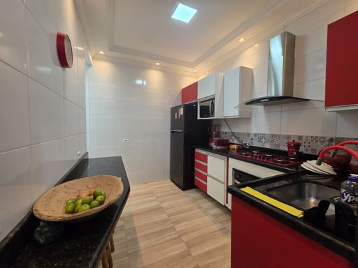 Sobrado à venda com 2 dormitórios, sendo 1 suíte com varanda, sala espaçosa, cozinha com móveis planejados, banheiro social no andar de cima, lavabo no andar de baixo, área de serviço, garagem coberta para 2 carros e um excelente espaço gourmet com churrasqueira.