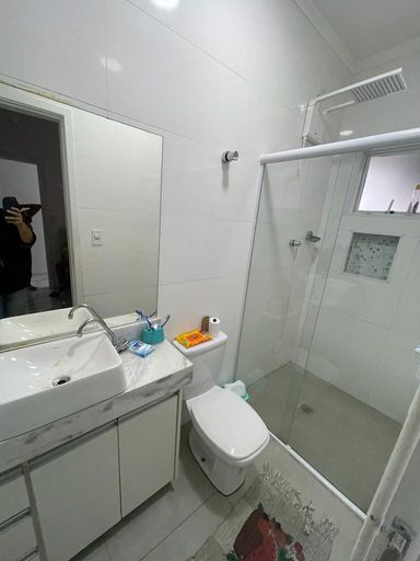 O imóvel conta com 3 dormitórios, todos com suíte, sala ampla para dois ambientes, cozinha planejada e lavabo. Possui ainda 2 vagas de garagem, piscina, espaço gourmet com churrasqueira, câmeras de segurança e cerca elétrica, garantindo lazer e segurança para toda a família.