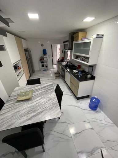 O sobrado está semi mobiliado e conta com móveis planejados em diversos ambientes, oferecendo praticidade e ótimo aproveitamento de espaço.