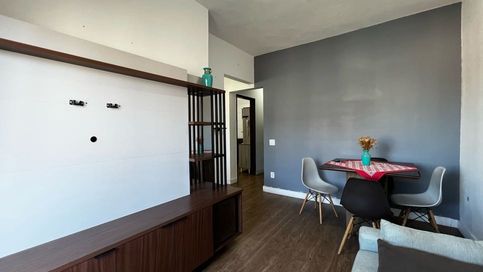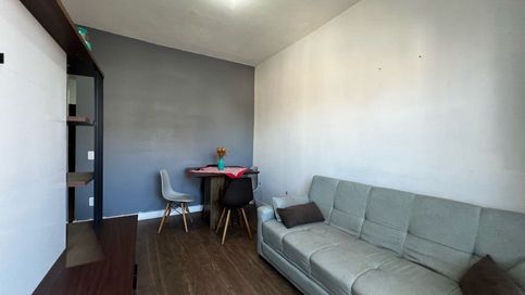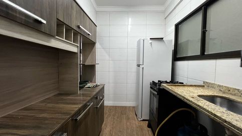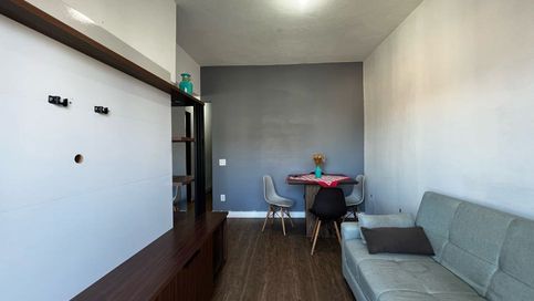 O imóvel possui 45m², com sala ampla e acesso à sacada frente rua, proporcionando ótima ventilação e iluminação natural. Conta ainda com cozinha equipada com armários, banheiro social com box e um quarto amplo, garantindo mais comodidade no dia a dia.