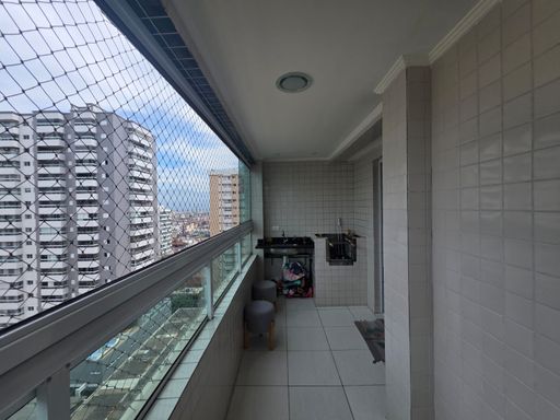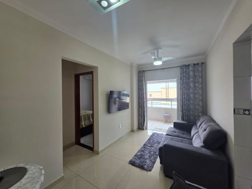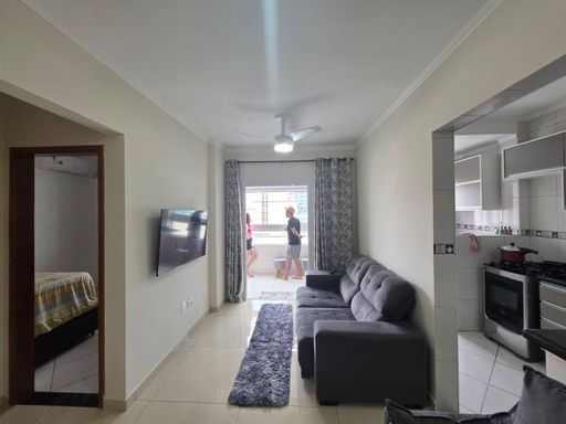 Apartamento mobiliado no bairro Ocian, em Praia Grande, com excelente aproveitamento de espaço e ótima infraestrutura de lazer.