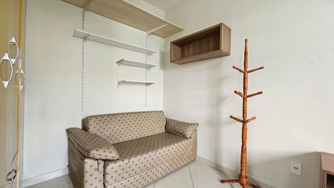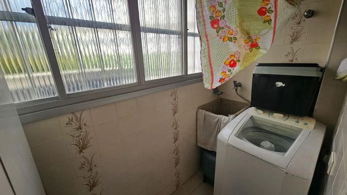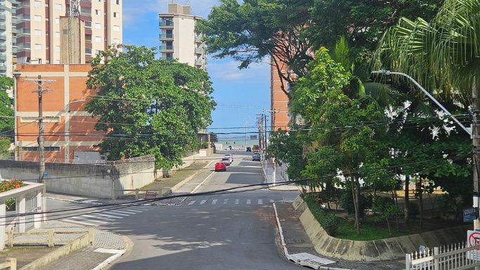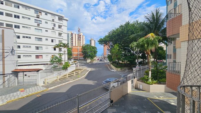 O imóvel possui 68m², com 2 dormitórios, sala com acesso à sacada frente rua e uma vistinha para o mar, proporcionando ótima ventilação e iluminação natural. Conta ainda com cozinha funcional e banheiro social com box.