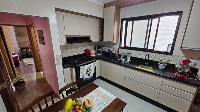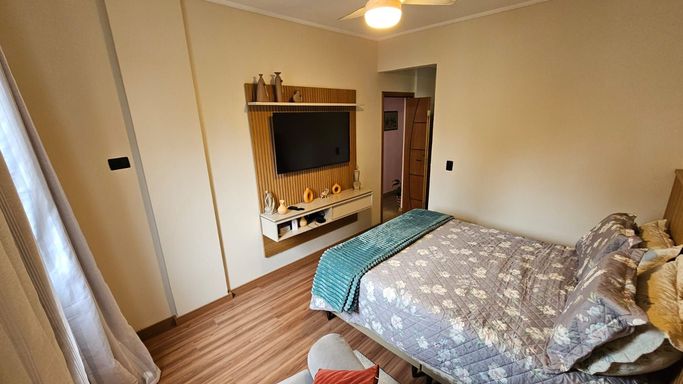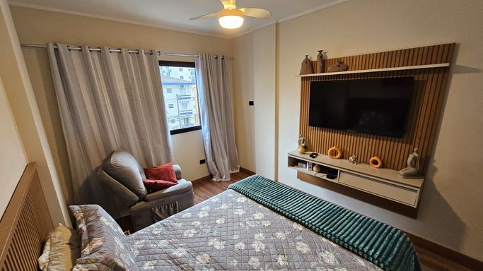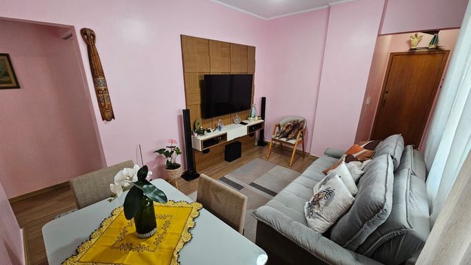 Apartamento totalmente reformado no bairro Vila Guilhermina, em Praia Grande, com excelente distribuição de espaço e ótimo acabamento.