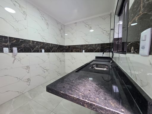 O imóvel conta com acabamento em porcelanato retificado, proporcionando mais elegância e praticidade no dia a dia. Possui pias e tanque em mármore, além de sancas e rebaixos em gesso na sala e na cozinha, valorizando ainda mais os ambientes e garantindo um visual contemporâneo.